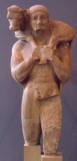 Moscóforo, que lleva la ternera sobre sus hombros, cambia la posición de los brazos