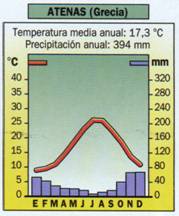 mediterráneo; pero las regiones al oeste del Píndo son más cálidas, más húmedas y