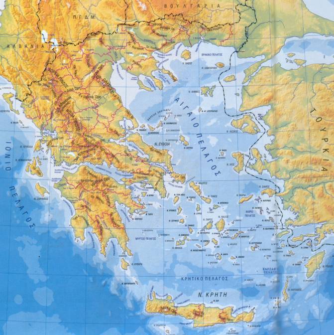 tres promontorios y los Golfos de Casandra y Hagion Oros. A todos estos accidentes geográficos hay que sumar los archipiélagos e islas del mar Egeo y la Isla de Creta. |
