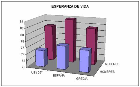 mujeres griegas a la media de la UE, pero superior en dos puntos la edad de