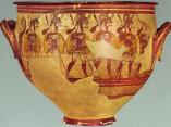 policroma sobre fondo blanco, una crátera, Vaso de los guerreros, de especial